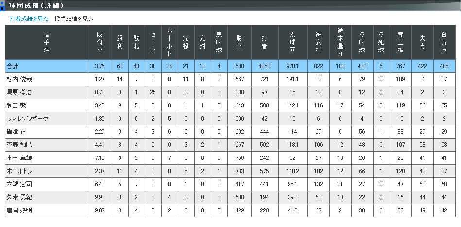 2.杉内 俊哉が勝数14で3位、防御率1.27で3位