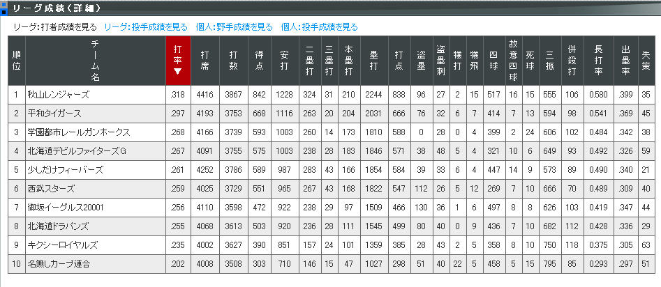 | 対御坂イーグルス20001さん | 7勝5敗 |