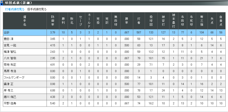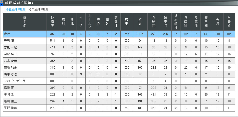ただ、投手ランキングの最高は、勝敗数で唐川の4位、防御率で岸の7位、セーブ数で馬原の4位とあまりよくなかったです。