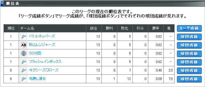 結果は、15戦6勝9敗で負け越しました。勝率0.40で5位・・・完敗でした(涙