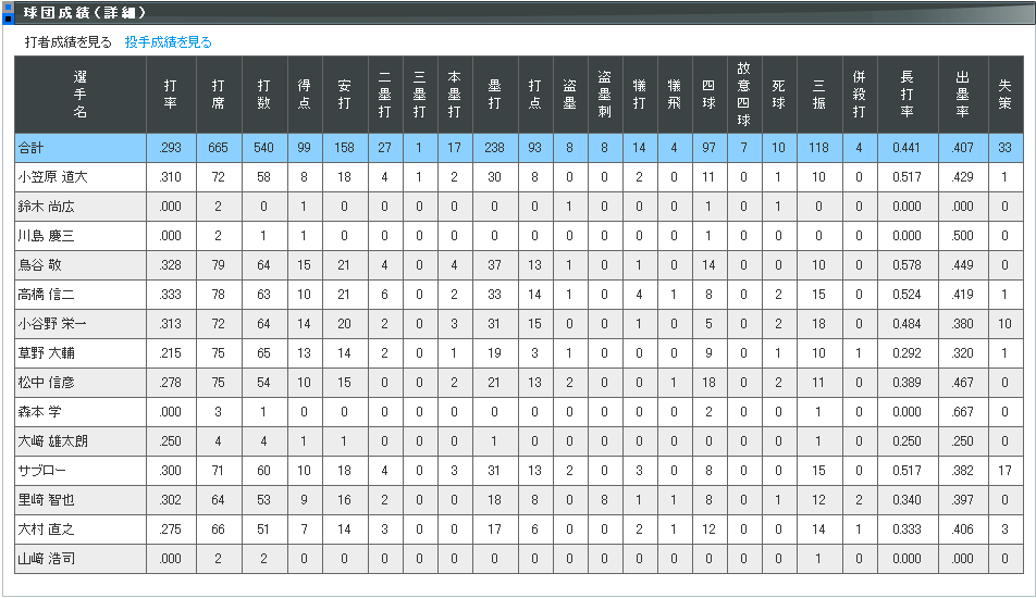 ただ、我がSOS団の選手が、最終的に打点・本塁打・打率のランキングで1位になっていました!!すごい!!