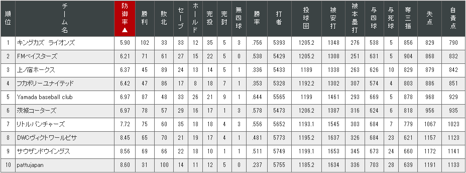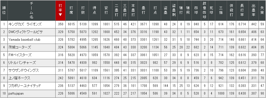 以下に、チーム別の打者成績と投手成績を載せておきました。