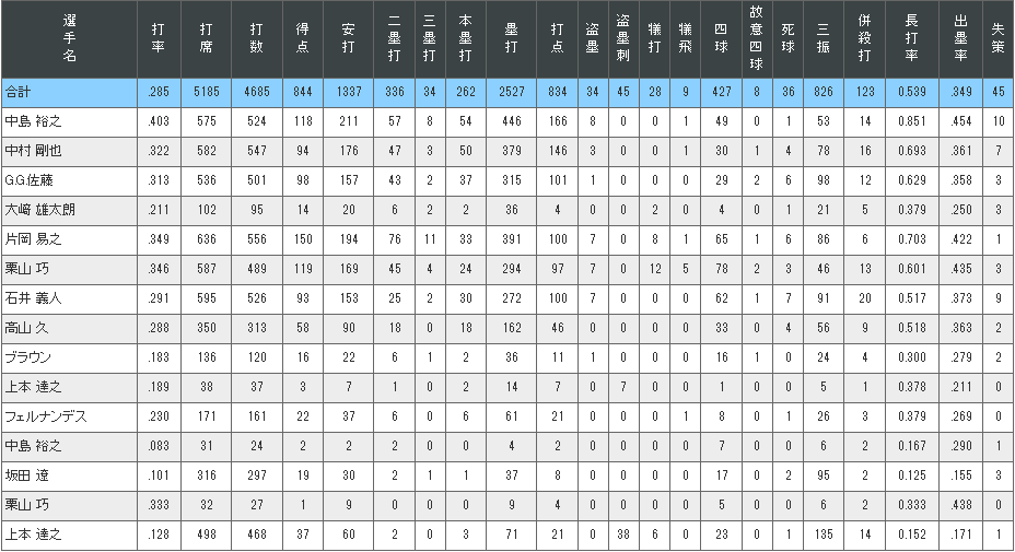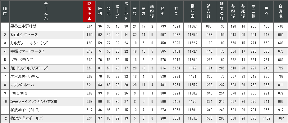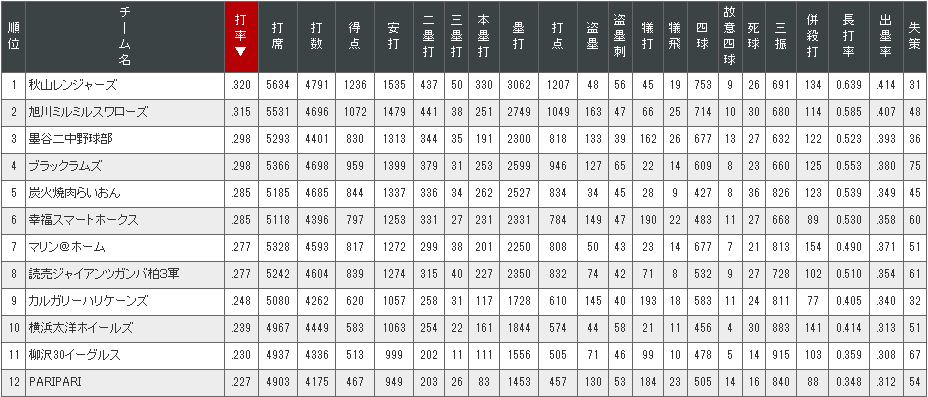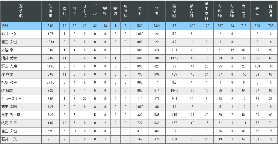 以下に、チーム別の打者成績と投手成績を載せておきました。