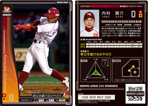 中島は2種類ありますが、.403と好成績な中島は01、なんじゃこりゃな成績の中島は05です。入手した時は、それなりに期待しました。しかし、実際使ってみるとこんなにもひどい成績になってしまったので、05→01に変更しました。一応、栗山05(.333の方)と中島05で「クリーンナップ・コンビ」を発動させたのですが、この結果。コンボがあっても、今回のリーグでは不調設定だったのだろうか?