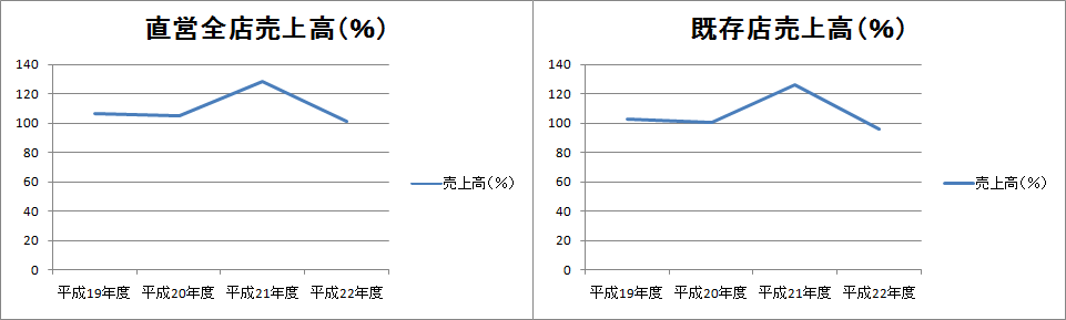 「当社の既存店伸び率は、平成18年3月期より平成22年3月期迄、5期連続100%以上の堅実な成長を遂げてまいりましたが、前期(平成22年3月期)は、頻繁にマスメディアに取り上げられたことが追い風となり、全国的に注目された結果、既存店実績は年間で18.5%の驚異的な伸び率となり、とりわけ昨年6月は、前年同月比125.9%と過去最高の伸び率となりました。