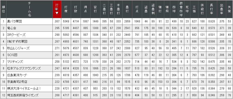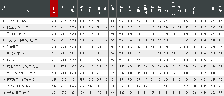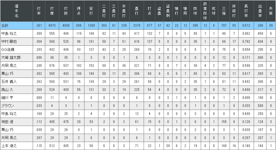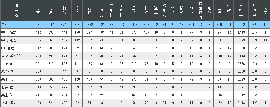三冠達成の中島01の.441はやはりすごい。今回は、始めから中島01を起用するという采配が功を奏したのでしょうね。この結果だと、中島05×3ありますが、中島01の起用がこれからも続くと思います。