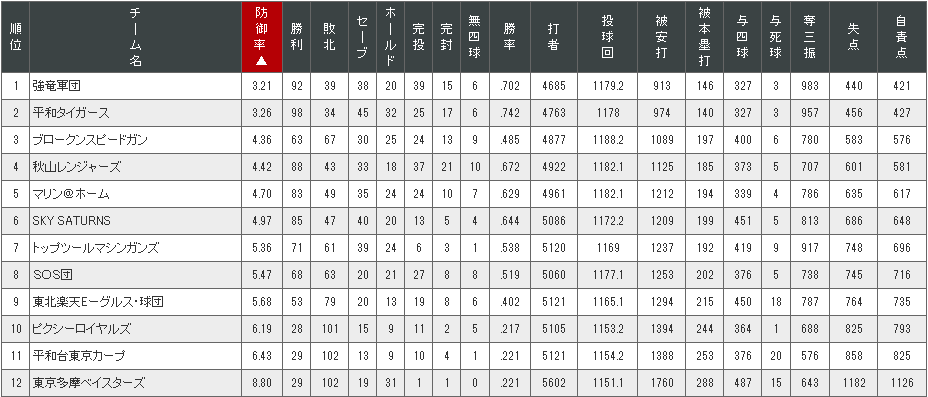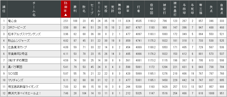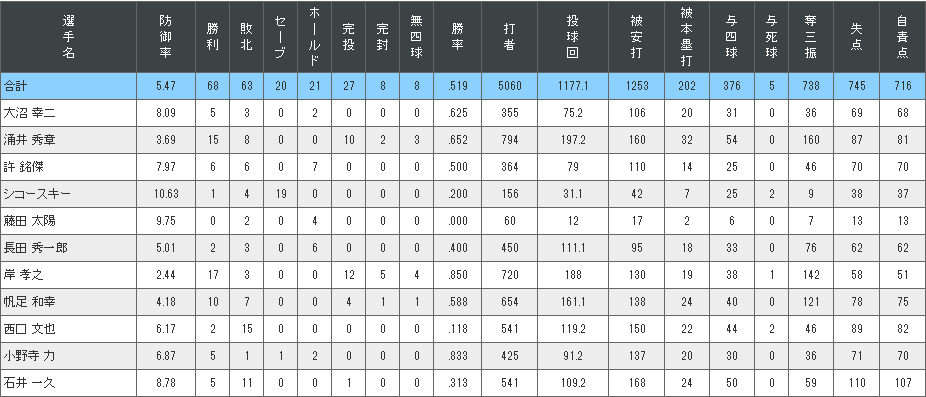 吉見05・・・防御率12.27→吉見03に変更。防御率は2.78