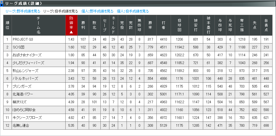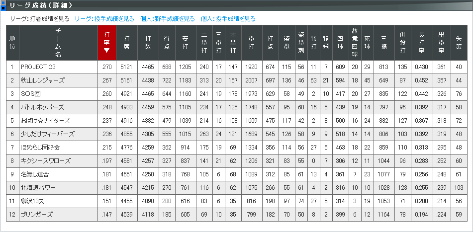 結果は、優勝のPROJECT G3さんとは5.0ゲーム差で2位でした。